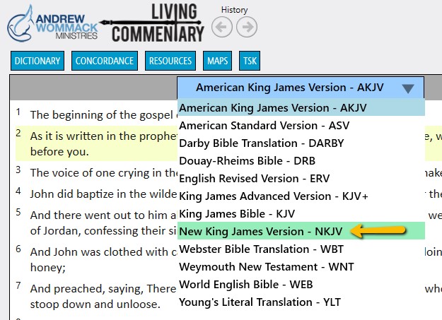 Note: The King James Bible and the Living Commentary are always set in the “On” position and cannot be changed.