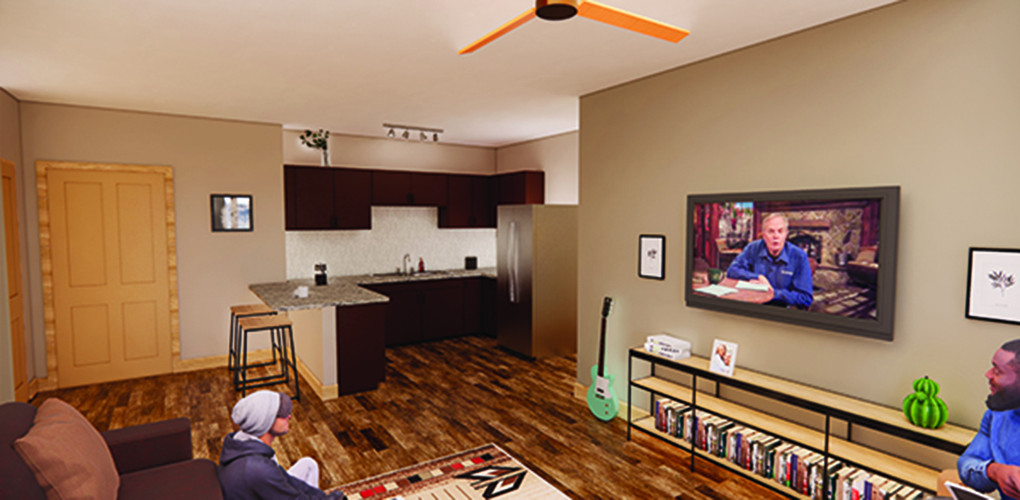 Student housing will provide four-bedroom, community-style residences for students. Additionally, they will address the need for on-campus living options and relieve the pressure on the current Woodland Park rental market.
