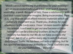 Angel shares that it is so amazing to read through the testimonies that inmates send to us. Even those who know they’re incarcerated for life still have a deep desire to get as many materials as possible, learn, grow, and teach others, and they are so thankful for what our team is sending them. Often, they read the materials and pass them to the inmate in the next cell, and so on. Hearing the truth is changing their lives, even while they are in prison, and they want to share it with everyone they can. They’re searching for answers they’ve never heard – and they’ve found it in AWM. We have included a few beautiful testimonies below, and we hope they encourage you!