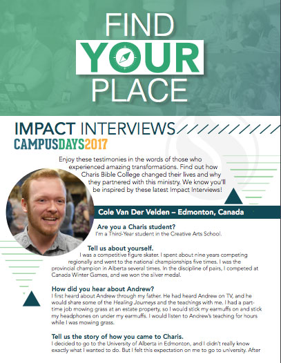 The experience at Charis Bible College’s Campus Days is a turning point for many people and prospective students. Attendees of all ages dip their toes into the Charis experience and have the chance to see what student life is really like. When students in Colorado and worldwide enroll, they get a solid foundation that’s built on the Word of God and gain the direction God is leading them in. Learn from these testimonies and let your story begin!