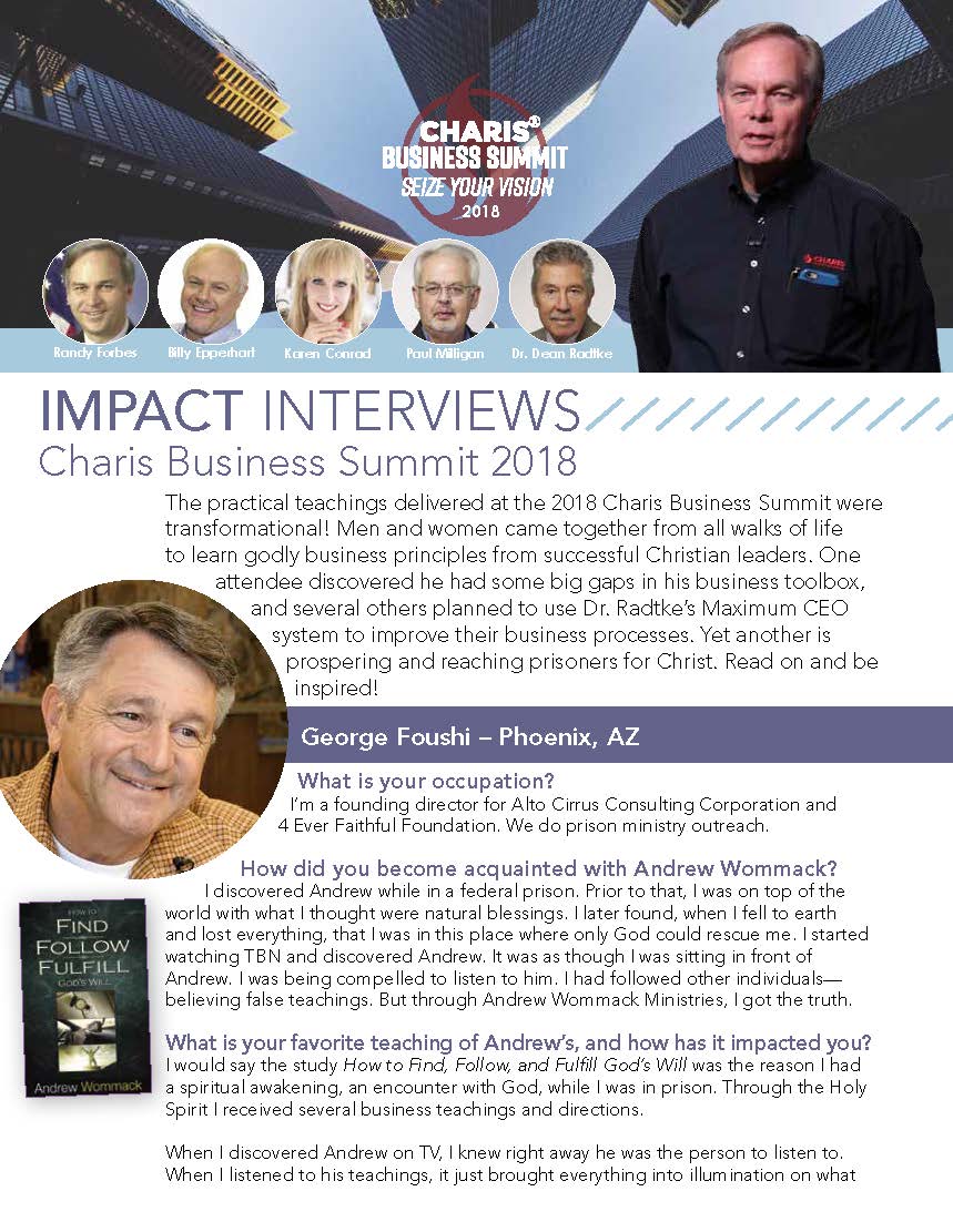 The practical teachings delivered at the 2018 Charis Business Summit were transformational! Men and women came together from all walks of life to learn godly business principles from successful Christian leaders. One attendee discovered he had some big gaps in his business toolbox, and several others planned to use Dr. Radtke’s Maximum CEO system to improve their business processes. Yet another is prospering and reaching prisoners for Christ. Read on and be inspired!