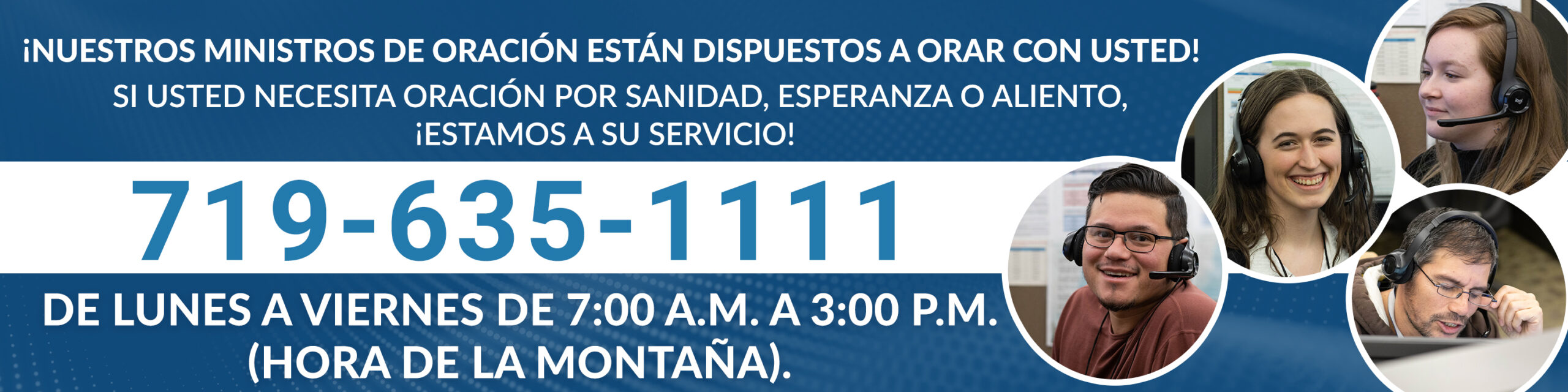 Por favor, llame a nuestra Línea de Ayuda al 719-635-1111 para pedir oración personal y para recibir algunos productos gratis que tenemos para aquellos que han orado para recibir a Jesús como Su Salvador y/o para ser llenos del Espíritu Santo.